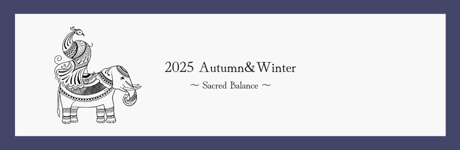 インド象の「安定・知恵・強さ」と、孔雀の「美・再生・ポジティブなエネルギー」を融合し、心と体の調和をサポートするコレクション。