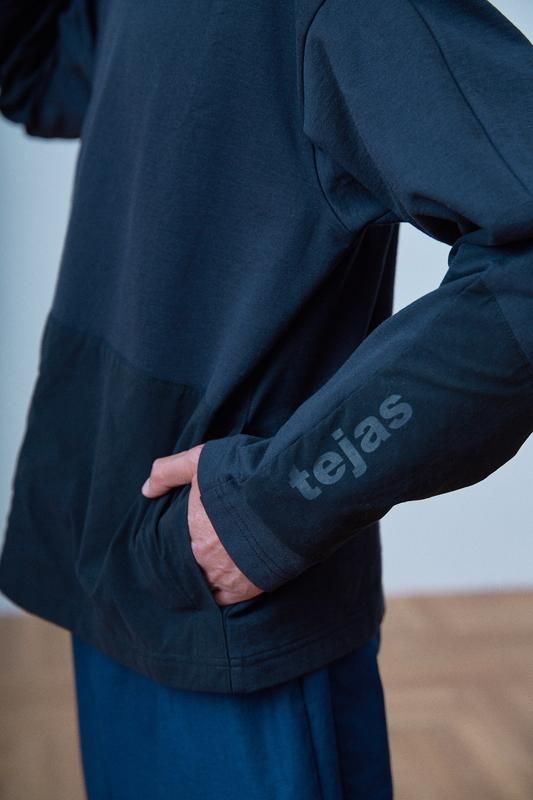 異素材の組み合わせが、男らしいスポーティーなデザインになっています。tejasロゴもラバープリントを使用し、
