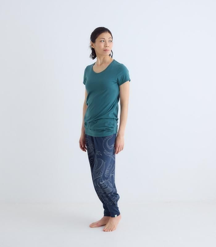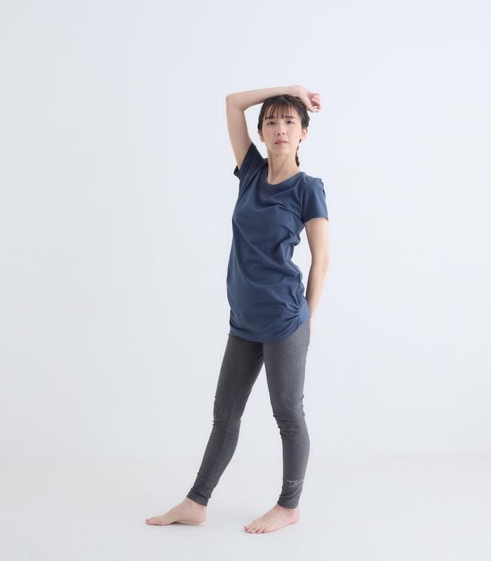 コットンベア天竺を使用したヨガの練習に最適なTシャツ。