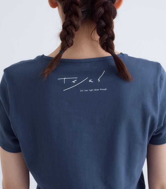 後襟ぐりにtejasのロゴマーク入り。
