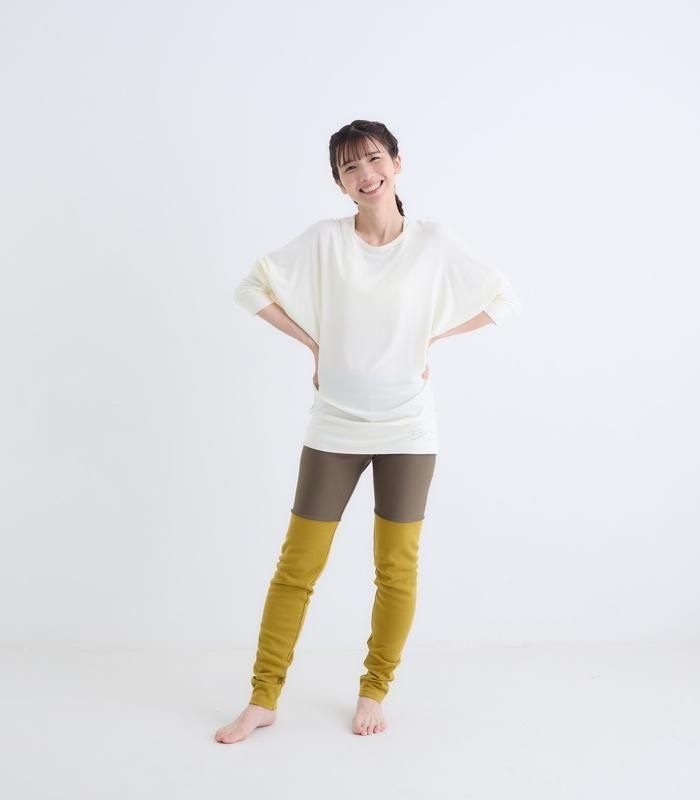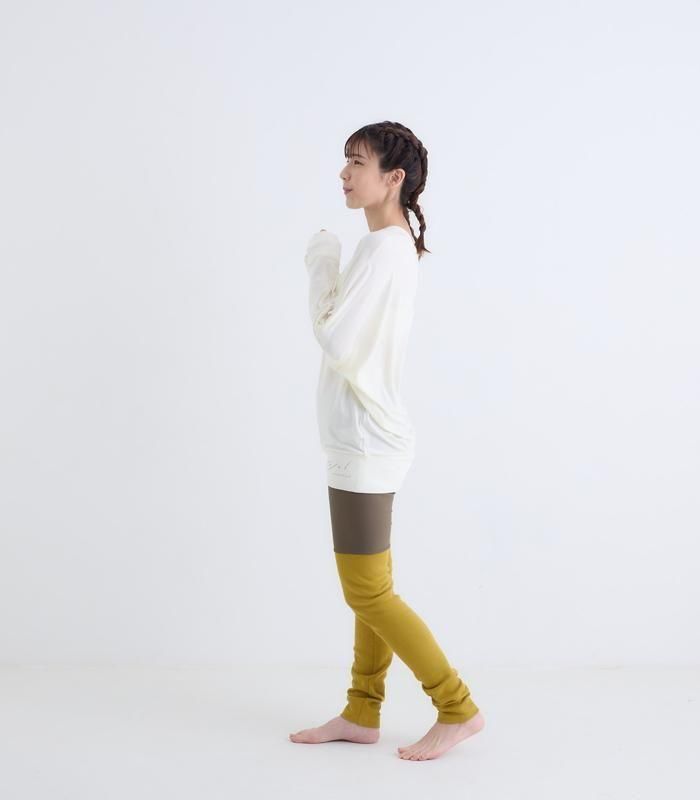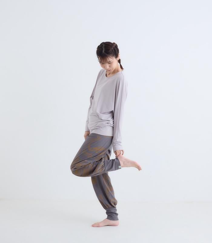 レーヨン素材の美しいドレープと柔らかさがとても心地よく、伸縮の強さはストレス無くヨガの動きをサポートします。